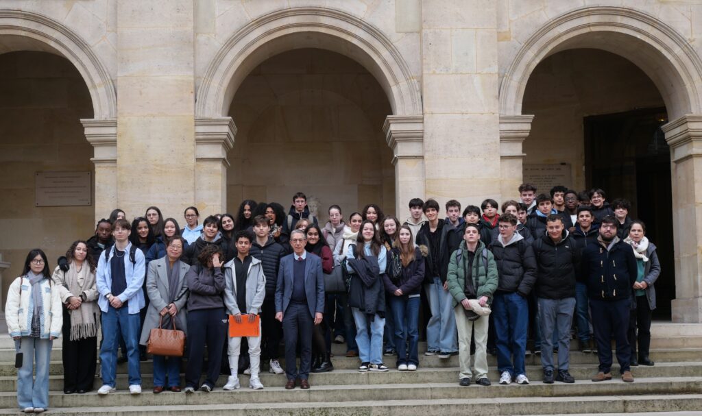 Le vendredi 16 janvier 2026, 55 élèves de Seconde du lycée Eugène Ionesco (Issy-les-Moulineaux), conduits par Mme Julie Shen, leur professeur de chinois, sont venus écouter M. Alain THOTE, membre de l’Académie des Inscriptions et Belles-Lettres, lors d’une rencontre organisée par l’Académie dans le cadre de son programme d’actions pédagogiques.