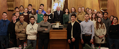 Le vendredi 18 janvier 2019, une cinquantaine d’élèves de Terminale des lycées Descartes (Antony) et Hoche (Versailles), accompagnés par leurs professeurs, Mmes S. Richer et Jacquemin de la Touvière, ont été accueillis par l’Académie dans le cadre de son programme pédagogique « Rencontres avec un Académicien » organisé par les professeurs détachés à l’Académie.
