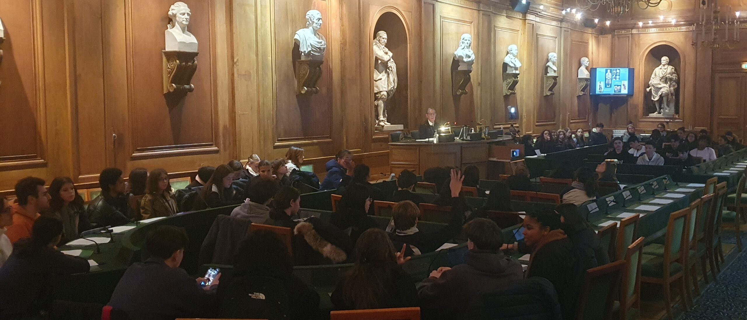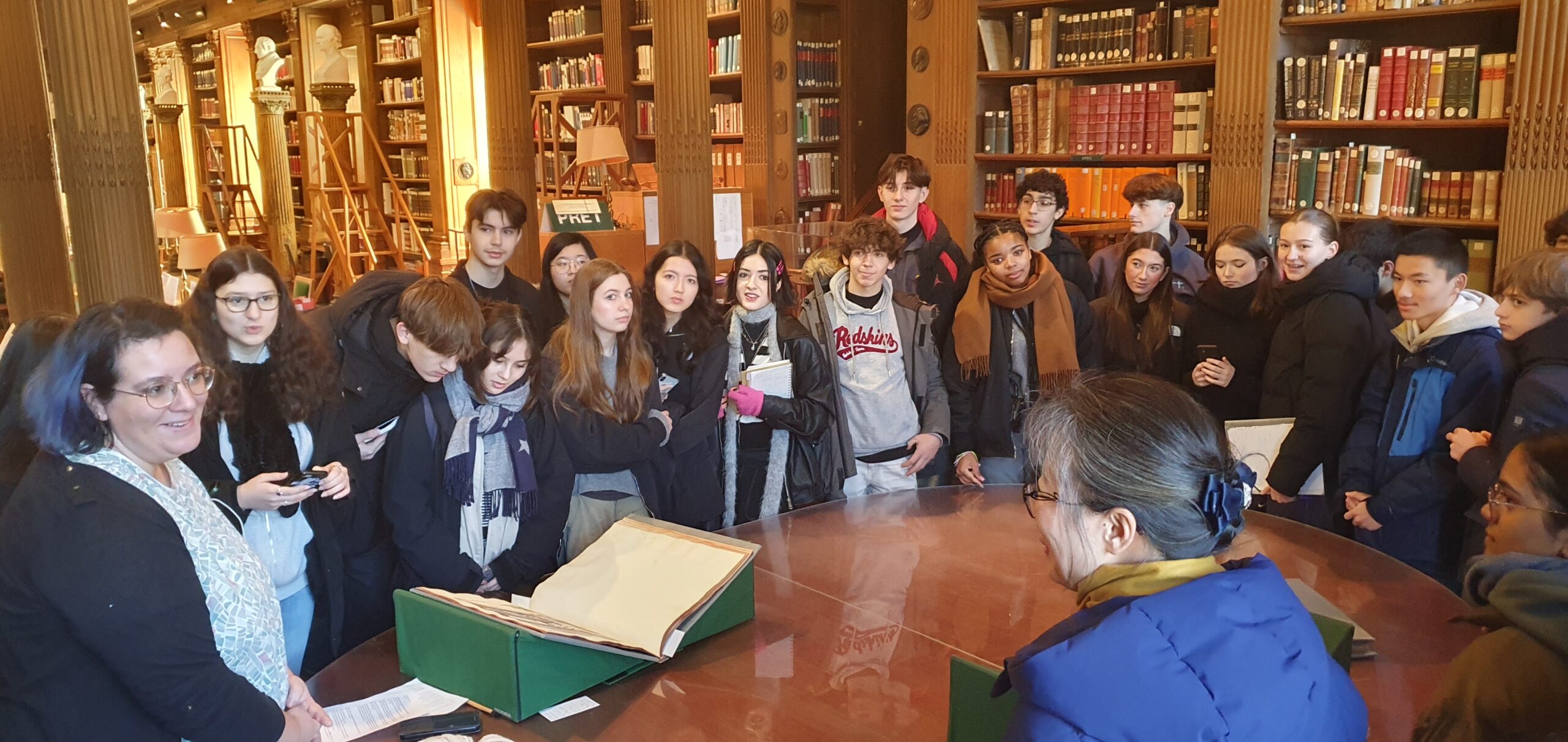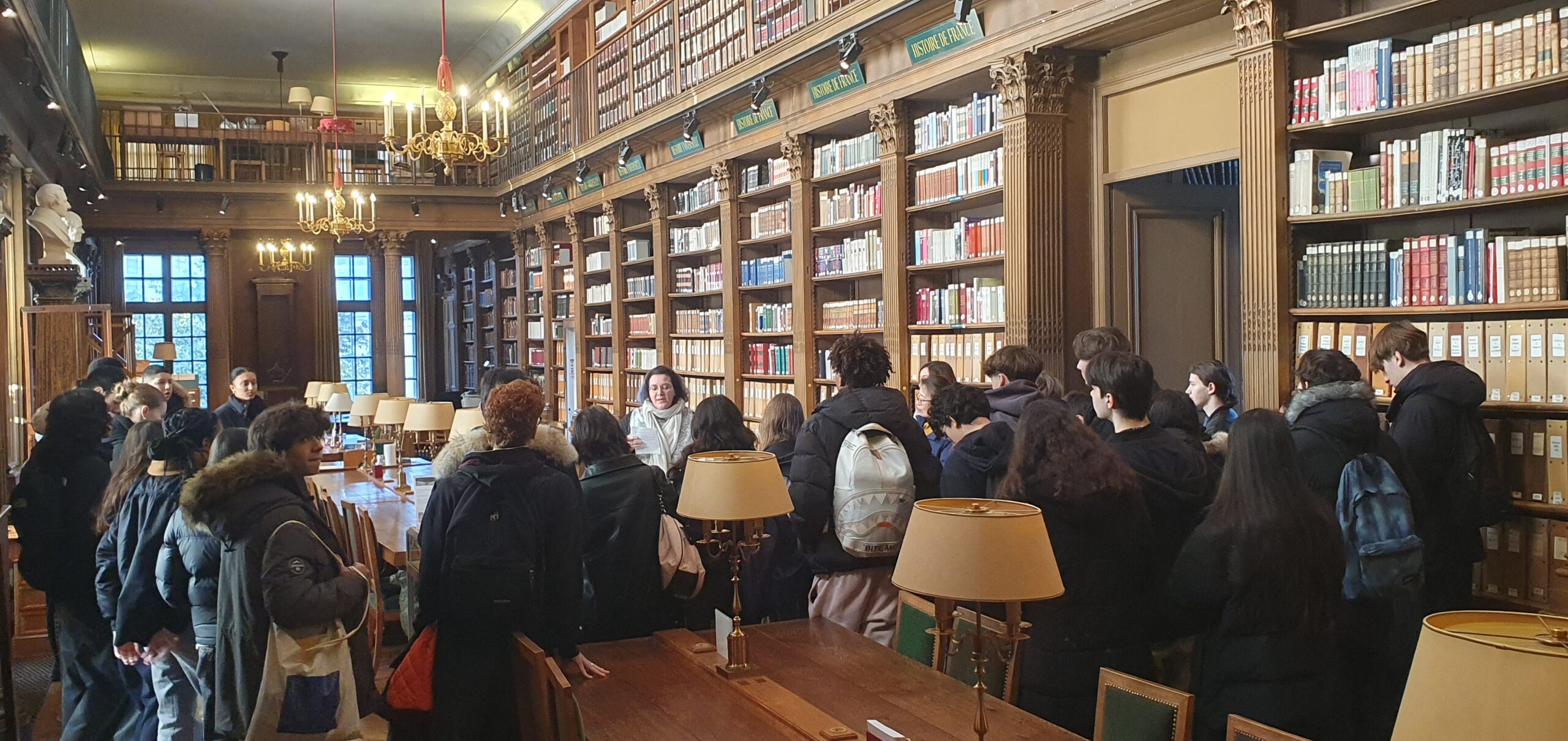 M. Matthieu Guyot et Mme Christine Tardiveau, professeurs agrégés détachés à l’Académie, leur ont fait, tout d’abord, visiter le palais du quai de Conti et leur ont exposé son histoire, ainsi que l’origine des missions scientifiques de l’Académie des Inscriptions et Belles-Lettres. Les élèves ont ensuite rejoint la Bibliothèque de l’Institut, dont Mme Marina Bourrec, bibliothécaire, leur a exposé l’histoire, et où elle leur a présenté des ouvrages anciens relatifs à la Chine sortis des fonds à leur intention. Ils ont, enfin, rejoint la grande salle des Séances de l’Académie où M. Alain THOTE leur a présenté une conférence sur « Les guerriers du Xi’an », illustrée de nombreuses photographies.