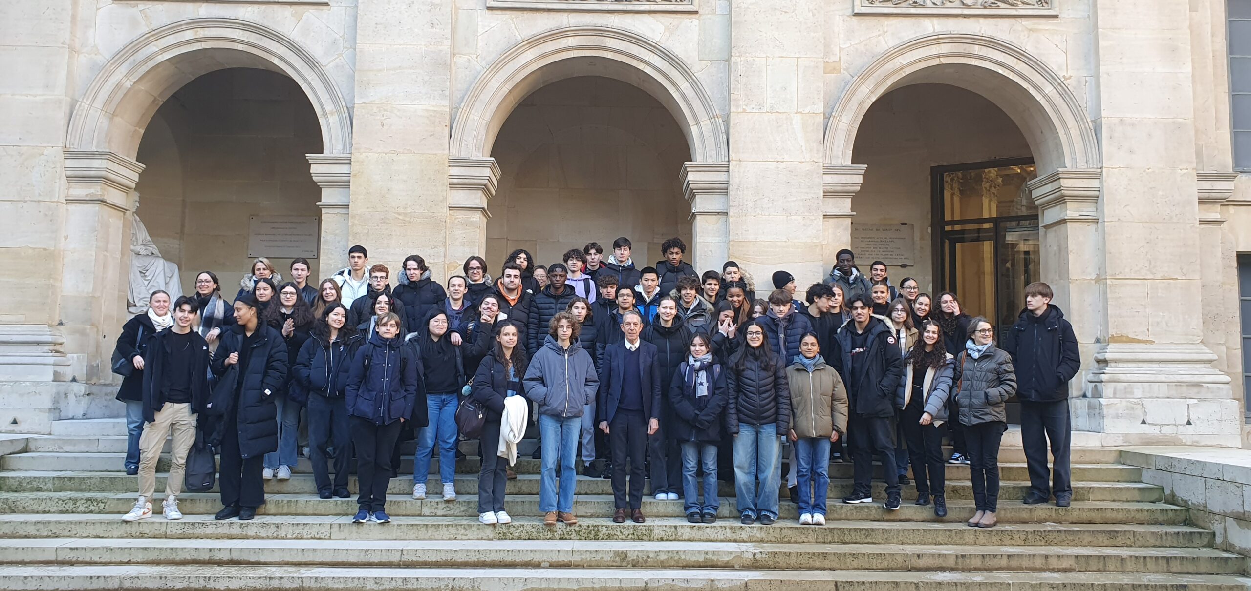 Le vendredi 19 janvier 2024, une soixantaine d’élèves de Première du lycée Eugène Ionesco (Issy-les -Moulineaux), conduits par Mme Julie Shen, professeur de chinois, et Mme Stéphanie Montibert, professeur d’histoire géographie, sont venus écouter M. Alain THOTE, membre de l’Académie des Inscriptions et Belles-Lettres, lors d’une nouvelle rencontre organisée par l’Académie dans le cadre de son programme d’actions pédagogiques.