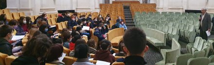 Les élèves étaient pour une part des Secondes, hellénistes, du lycée Descartes (Antony), conduits par Mme Sylvie Richer, professeur de Lettres classiques, et pour l’autre des Terminales, latinistes, du lycée Lakanal (Sceaux), conduits par Mme Isabelle Vogtensperger, professeur de philosophie, et Mme Laure Canali, professeur de Lettres classiques.