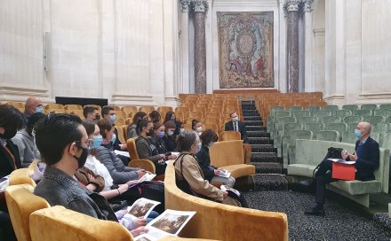 Le 21 mai 2021, l’Académie a accueilli un groupe d’élèves de seconde du Lycée Descartes d’Anthony (Hauts-de-Seine). Ces derniers ont pris part, sous la direction de MM. Matthieu Guyot et William Méric, professeurs détachés, à une visite du Palais de l’Institut qui leur a permis de découvrir l’histoire de l’ancien Collège des Quatre-Nations, mais également l’histoire et les missions de l’Académie des Inscriptions et Belles-Lettres. Ils ont ensuite assisté à une conférence donnée par M. Dominique BARTHÉLEMY, membre de l’Académie.