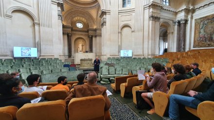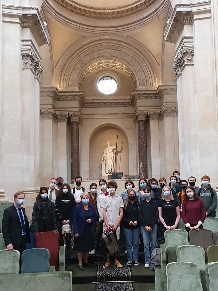 MM. Matthieu Guyot et William Méric, professeurs détachés à l’Académie, leur ont donné une visite du palais dont ils leur ont présenté l’histoire et leur ont exposé les grandes missions de l’Académie des Inscriptions et Belles-Lettres.