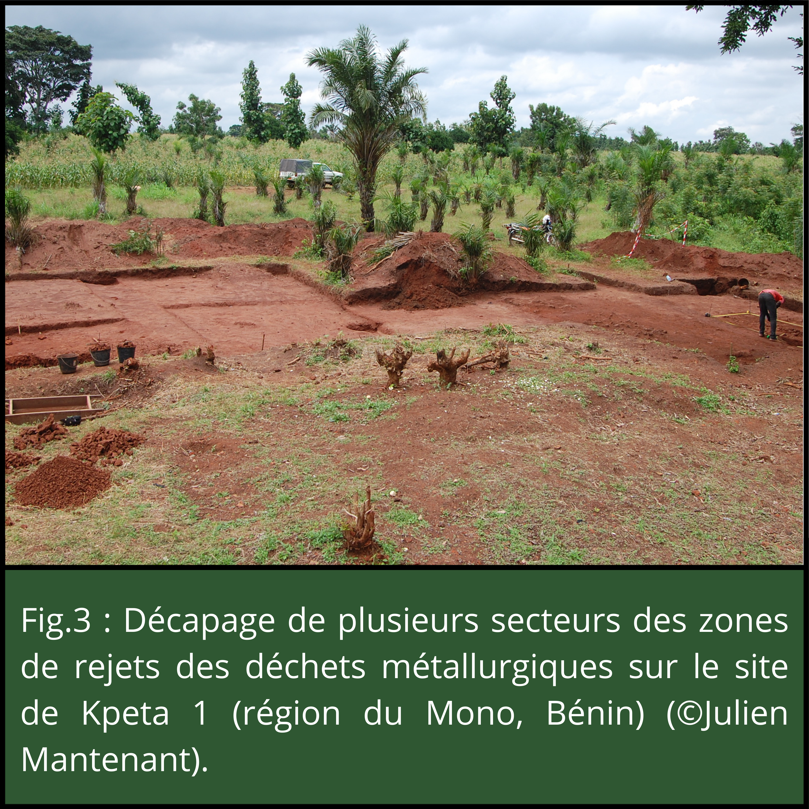 - Figure 3 : Décapage de plusieurs secteurs des zones de rejets des déchets métallurgiques sur le site de Kpeta 1, région du Mono Bénin (©Julien Mantenant) ;