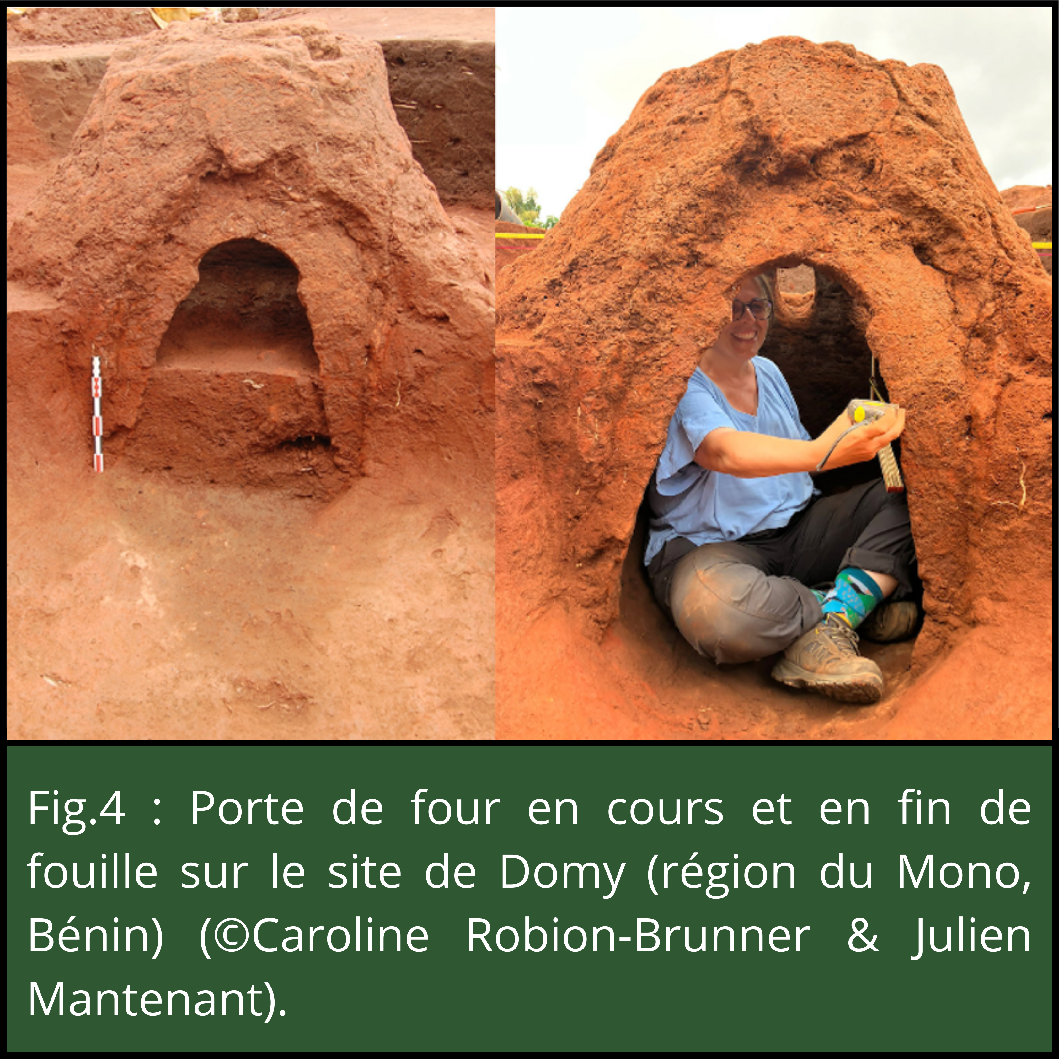 - Figure 4 : Porte de four en cours et en fin de fouille sur le site de Domy (région du Mono, Bénin) (©Caroline Robion-Brunner & Julien Mantenant) ;