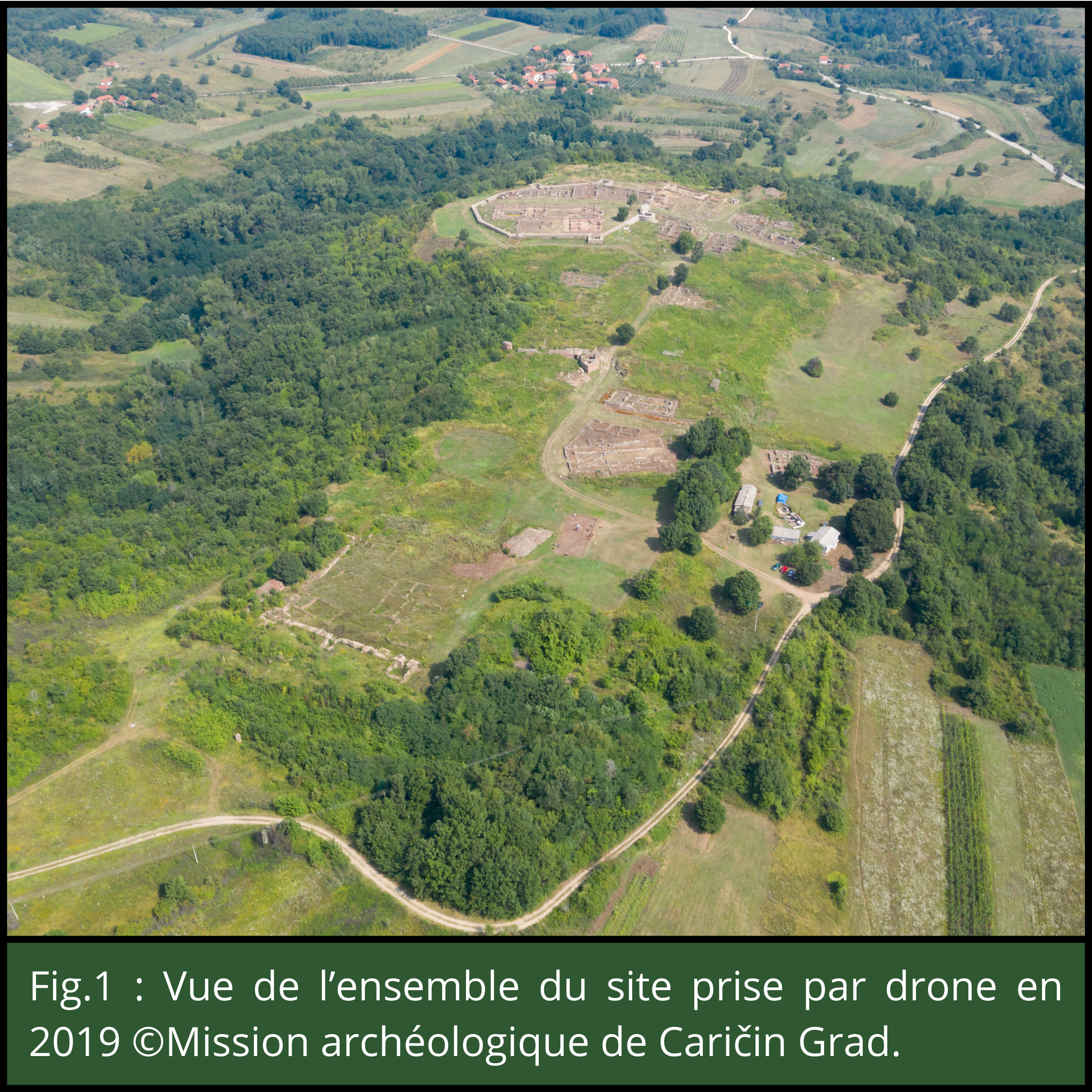Le site byzantin de Caričin Grad est localisé dans le Sud de la Serbie, à une cinquantaine de kilomètres de Niš. D’après les données textuelles, il doit très probablement être identifié à Justiniana Prima, la ville fondée par l’empereur Justinien Iᵉʳ (527-565) près du lieu de sa naissance. Ce site dont la superficie avoisine les 9 hectares est structuré par des remparts et comprend trois parties : l’Acropole, la Ville Haute et la Ville Basse. Fondée ex-nihilo vers 535, cette cité, siège d’un archevêché à la juridiction étendue, a souffert des invasions avaro-slaves dès la fin du VIe siècle et a été abandonnée durant la première moitié du VIIe siècle. Hormis quelques réoccupations ponctuelles durant la période médiévale, aucune construction ultérieure n’y a pris place, laissant intacte l’emprunte de ses vestiges dans un paysage dont la beauté naturelle est préservée.
