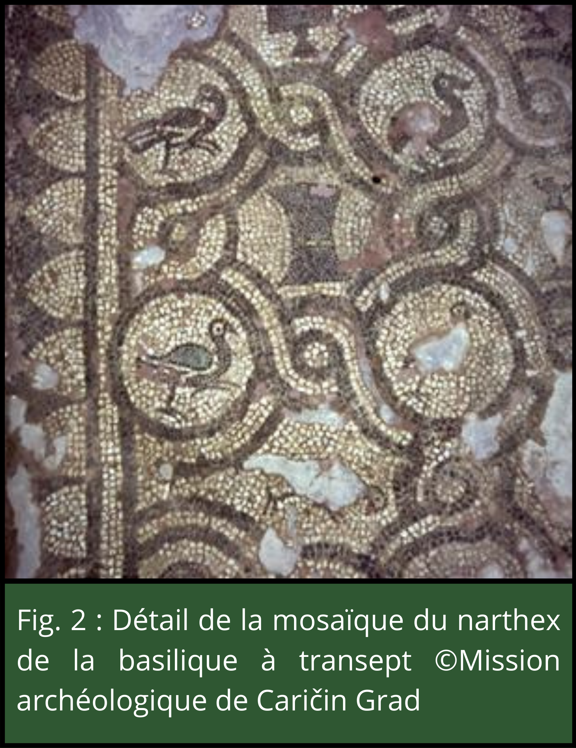 - Figure 2 : Détail de la mosaïque du narthex de la basilique à transept ;