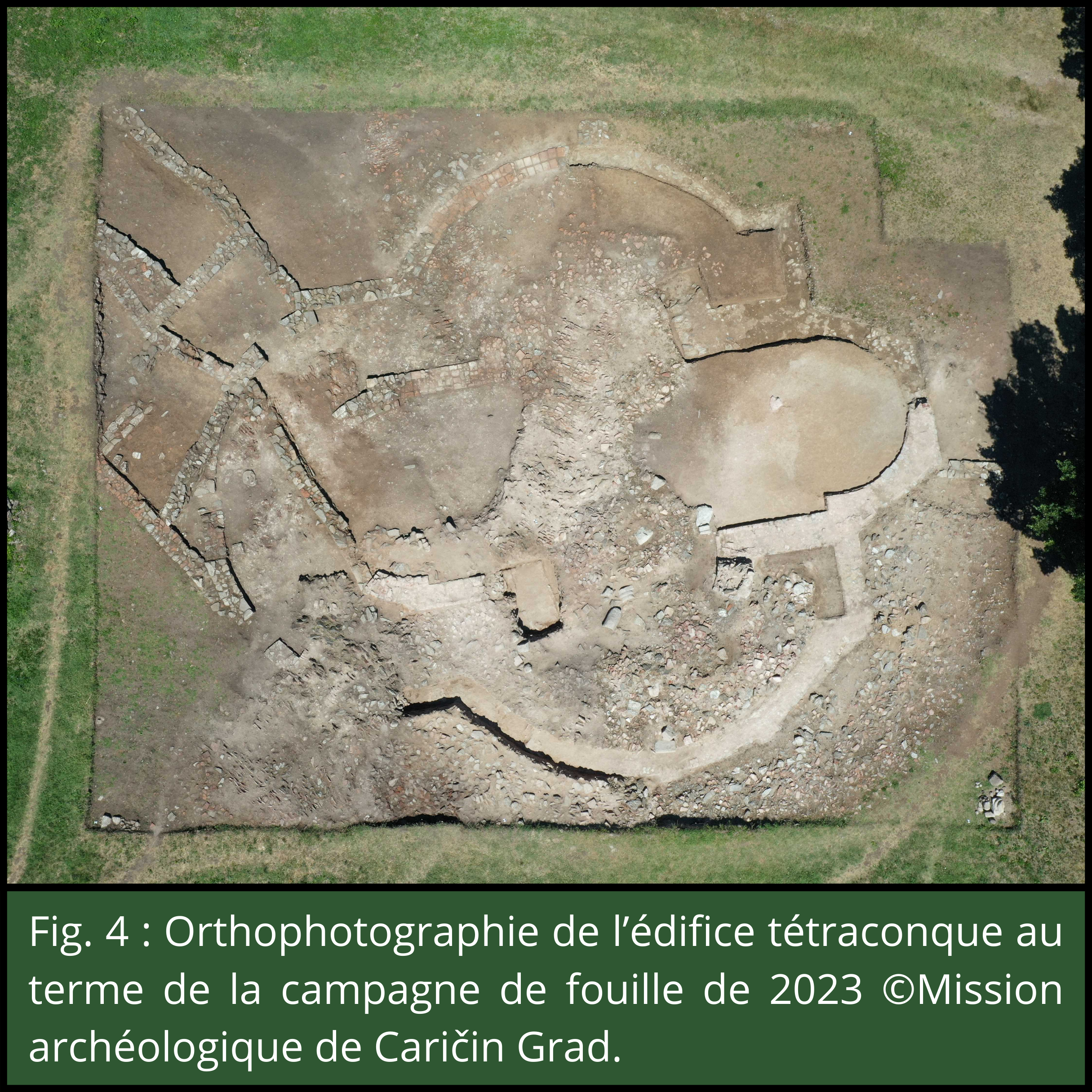 - Figure 4 : Orthophotographie de l’édifice tétraconque au terme de la campagne de fouille de 2023 ;