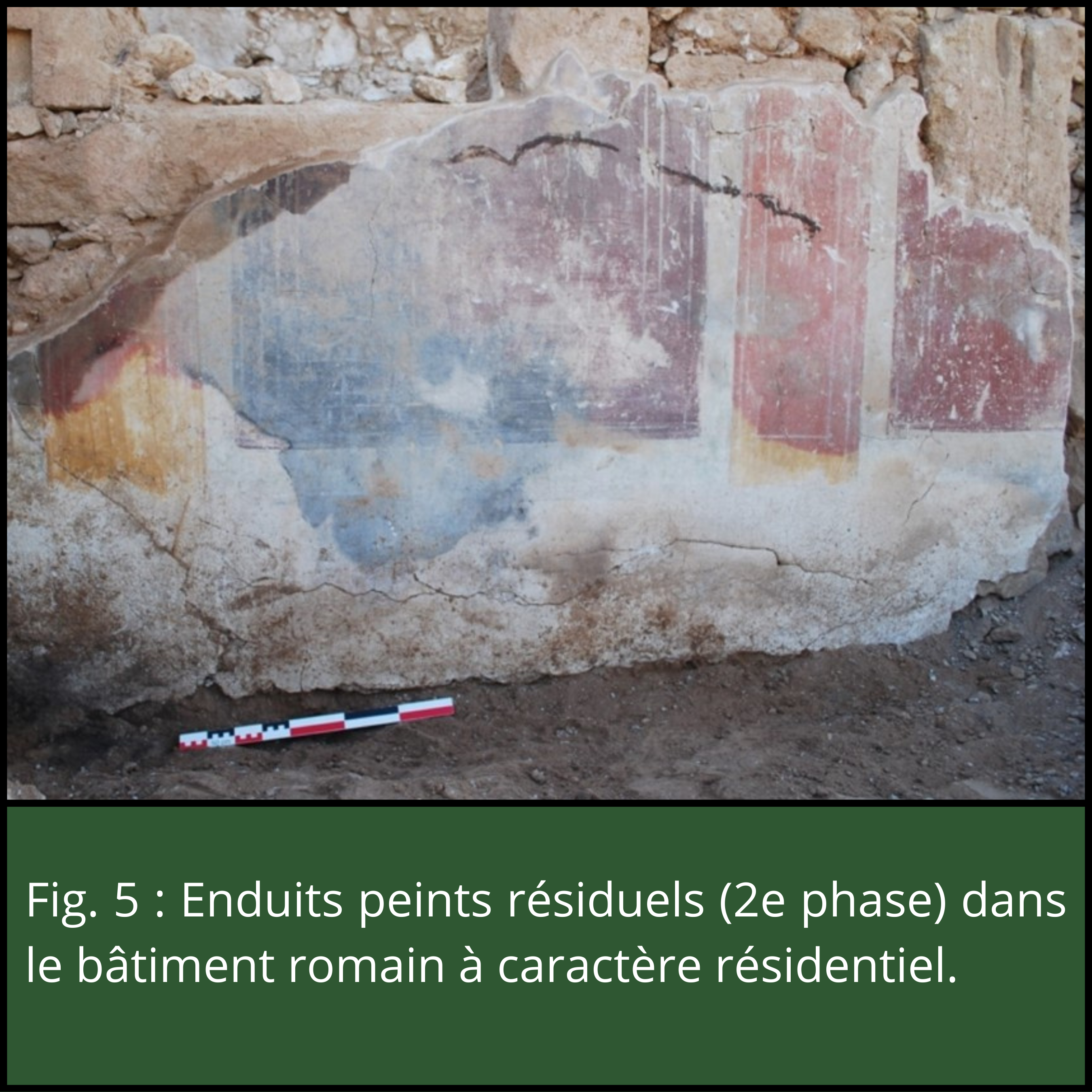 - Figure 5 : Enduits peints résiduels (2ᵉ phase) dans le bâtiment romain à caractère résidentiel ;