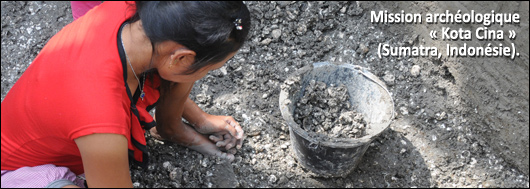 La recherche archéologique française, soutenue par la Commission Consultative des recherches archéologiques à l’étranger, est présente dans la province de Sumatra-Nord (Indonésie) depuis vingt ans. Après l’étude des sites d’habitat de Barus-Lobu Tua (IXe – XIe siècle EC) et Barus-Bukit Hasang (XIIe – début du XVIe siècle EC) en bordure de l’océan Indien, de Si Pamutung (IXe-XIIIe siècle EC), au centre de l’île, dans la région de Padang Lawas, c’est, depuis 2011, le site de Kota Cina, sur la côte orientale, en bordure du détroit de Malacca, qui fait l’objet d’investigations de la part d’une équipe franco-indonésienne. Aujourd’hui dans la banlieue de Medan, ville de plus de deux millions d’habitants, capitale de la province de Sumatra Nord, il est bordé par la mangrove, à moins de dix kilomètres du port de Belawan.
