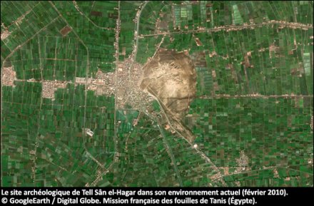 - 2. Le site archéologique de Tell Sân el-Hagar dans son environnement actuel (février 2010). © GoogleEarth / Digital Globe.