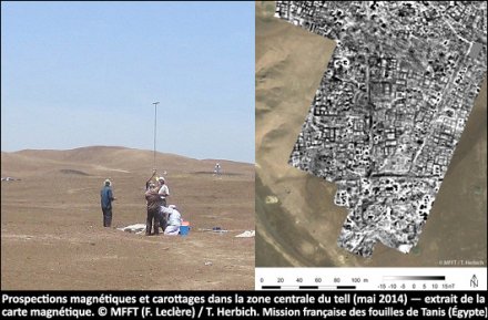 Au Centre Wladimir Golénischeff de l’EPHE, base parisienne de la MFFT, les archives de la Mission Montet sont en cours de numérisation, dans la perspective, à moyen terme, d’un projet de mise en ligne de cette importante documentation (projet ANTa : Archives numériques de Tanis). Les archives d’autres anciens fouilleurs du site sont également recherchées et étudiées. Le programme de la campagne de printemps 2016 prévoit la poursuite des opérations engagées dans le cadre du quadriennal proposé en 2013 et partiellement accomplies en 2014-2015 : prospections magnétiques et céramologiques, notamment dans la partie sud de la zone centrale du site, carottages archéologiques et géomorphologiques sur le tell et à ses abords, couverture photogrammétrique par cerf-volant des zones des temples d’Amon et de Mout, en lien avec des sondages ponctuels, dans la perspective du géo-référencement des anciens plans des vestiges et en prévision de futures opérations de fouilles, notamment dans le secteur de la porte sud de la grande enceinte du temple d’Amon. Le programme épigraphique sera également poursuivi sur le terrain comme au Musée du Caire (paléographie des inscriptions de la tombe d’Osorkon II, achèvement de l’étude des monuments inscrits de Psousennès Ier et des blocs des tombes privées de la 21e dynastie, étude de monuments divers et réorganisation des magasins de fouilles). Des travaux de conservation et l’évaluation d’une modélisation photogrammétrique seront également mis en œuvre dans les tombes royales.