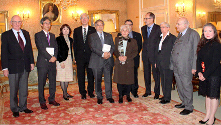 - De g. à dr : le Secrétaire perpétuel M. ZINK, M. O. Kano, M. et Mme H. Kunieda, M. et Mme S. Sato, M. J.-L. Lemaitre, M. et Mme M. Sot, M. P. TOUBERT et Mme S. Shimahara.