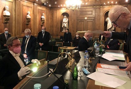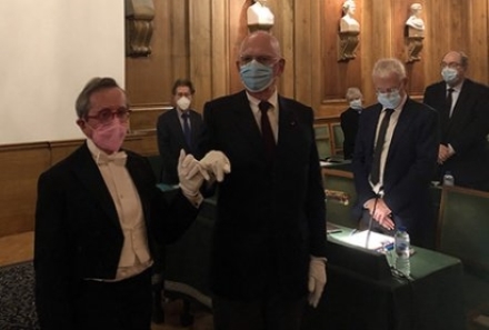 Le vendredi 5 février 2021, s’est déroulée la cérémonie de réception de l’américaniste Dominique MICHELET, élu académicien le 20 octobre 2020 au fauteuil de Véronique SCHILTZ. Après avoir été introduit et présenté à ses confrères par le Secrétaire perpétuel Michel ZINK, M. Dominique MICHELET a reçu des mains du Président Yves-Marie BERCÉ le décret le nommant membre de l’Académie ainsi que la médaille de membre de l’Institut.