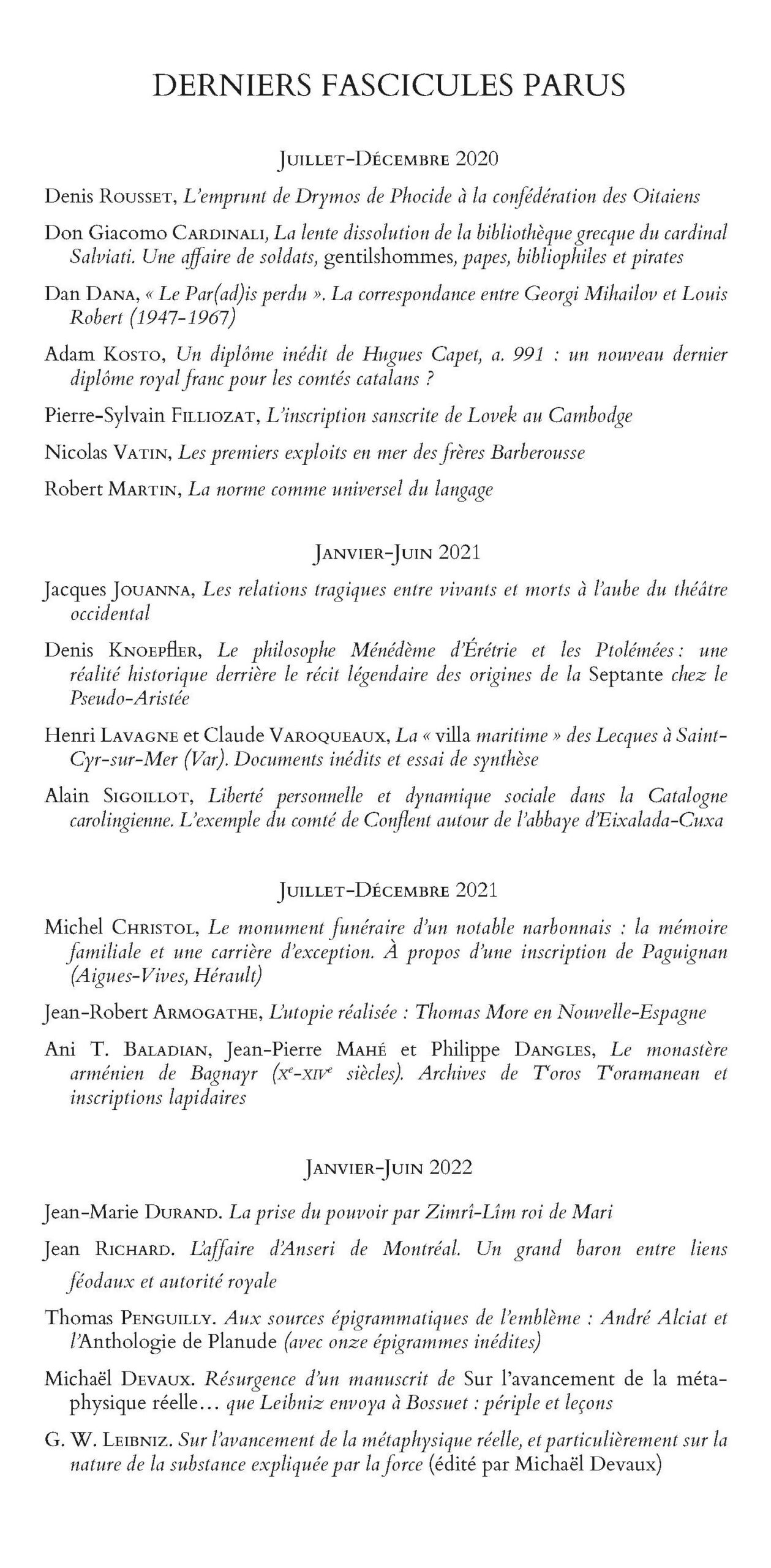 248p., 16 ill. Parution décembre 2022. Abonnement : l’année 2022 en 2 fasc.,