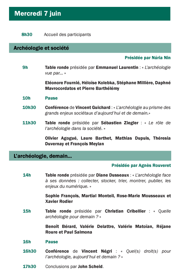 ◊ Table ronde « Quelle archéologie pour demain ? », présidée par Christian Cribellier avec Benoît Bérard, Valérie Delattre, Valérie Matoïan, Réjane Roure et Paul Salmona