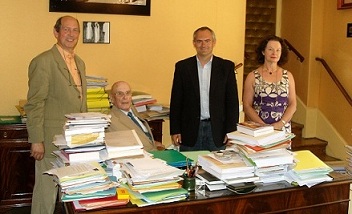 - De g. à d. : Daniel Delattre, M. Jean Leclant, Brent Seales et Mme Pastoureau.